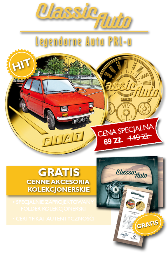 Samochód epoki PRL-u, marzenie milionów Polaków, ikona polskiej motoryzacji, król polskich szos lat 70-tych, samochód-legenda – teraz dostępny dla kolekcjonerów AZ Aurum – bez talonów, oszczędnościowej książeczki samochodowej w PKO, bez loterii i kolejek. Niezapomniany Fiat 126p w numizmatycznym wydaniu!
