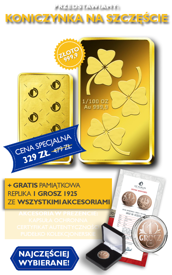 AZ Aurum Numizmatyka Adam Zieliński jest wyłącznym dystrybutorem oryginalnych złotych numizmatów z kolekcji ZŁOTO NA SZCZĘŚCIE. Firma gwarantuje zarówno najwyższą jakość oferowanych produktów, jak i najwyższy standard obsługi.